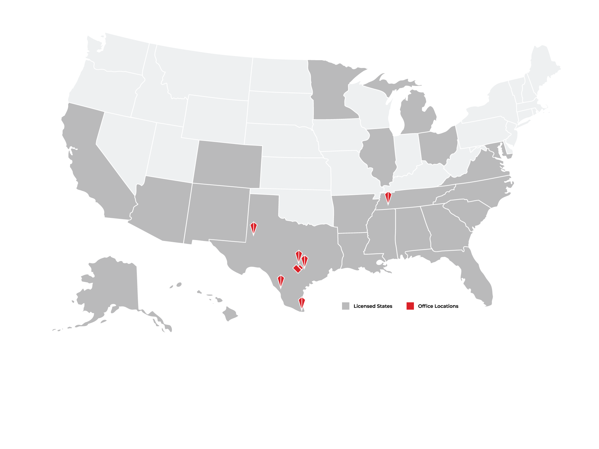 *Licensed In: Alabama, Alaska, Arizona, Arkansas, California, Colorado, Florida, Georgia, Illinois, Louisiana, Maryland, Michigan, Minnesota, Mississippi, New Mexico, North Carolina, Ohio, Oklahoma, South Carolina, Tennessee, Texas, and Virginia